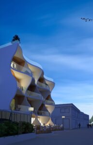 Mimarisinde Ege’nin akıcı ve dingin çizgilerinden esinlenen Eolia, marina cephesinde dalgaların ritmini, kent cephesinde ise davetkâr bir sadeliği yansıtıyor. Organik formlu balkonları ve ışıkla kurduğu zarif ilişki sayesinde her bir detay, hem manzara ile bütünleşiyor hem de sakin bir estetik ortaya koyuyor.